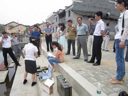 当日上午,民建井冈山大学支部骨干会员、生态水质专家、青原支部骨干会员、井冈山大学统战部负责同志、民建吉安市委领导一行20余人,到青原区富田镇下坪村进行生态水质、古村落保护考察活动。在古村现场,会员和专家分成两组,一组借助带来的水质检测仪器、工具对该村的生活用水、生产用水、饮用水等进行取样检测;一组对古村建筑、文物、周边环境进行了认真考察。本次活动检测、考察成果将形成调研报告递交相关部门决策参考。