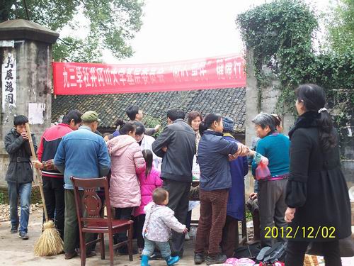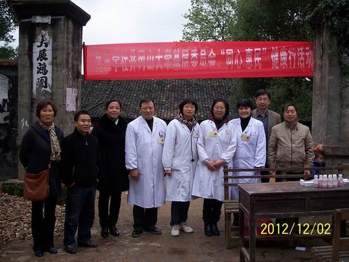 九三学社井冈山大学基层委员会关心农民、关注民生,以实际行动学习贯彻党的十八大精神,2012年12月2日精心组织社内8名知名医疗专家到吉水县黄桥镇开展“同心·惠民”健康行义诊活动。