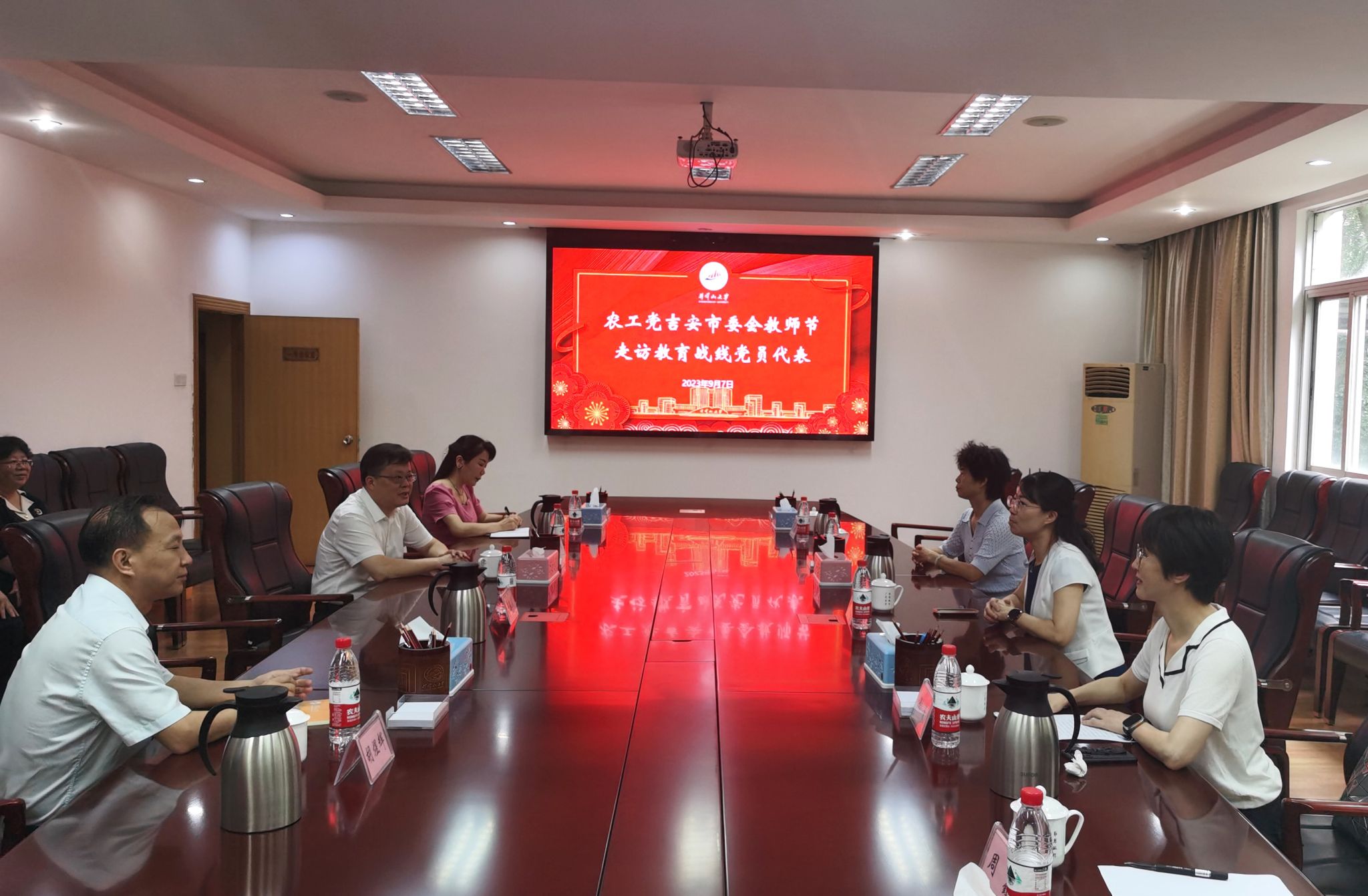 在第39个教师节来临之际,9月7日,吉安市政协副主席、农工党吉安市委会主委邱秀华一行来校走访慰问教育战线党员代表,并通过他们向学校农工党教师和教育工作者致以节日的问候和祝福。校党委常委、统战部部长刘梁军,学校农工党教师代表、党委统战部全体人员参加了座谈会。