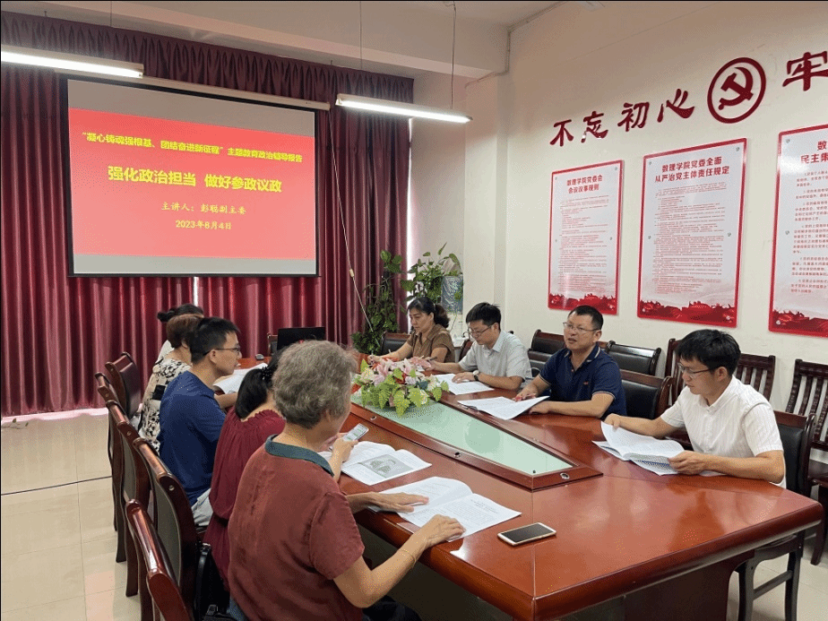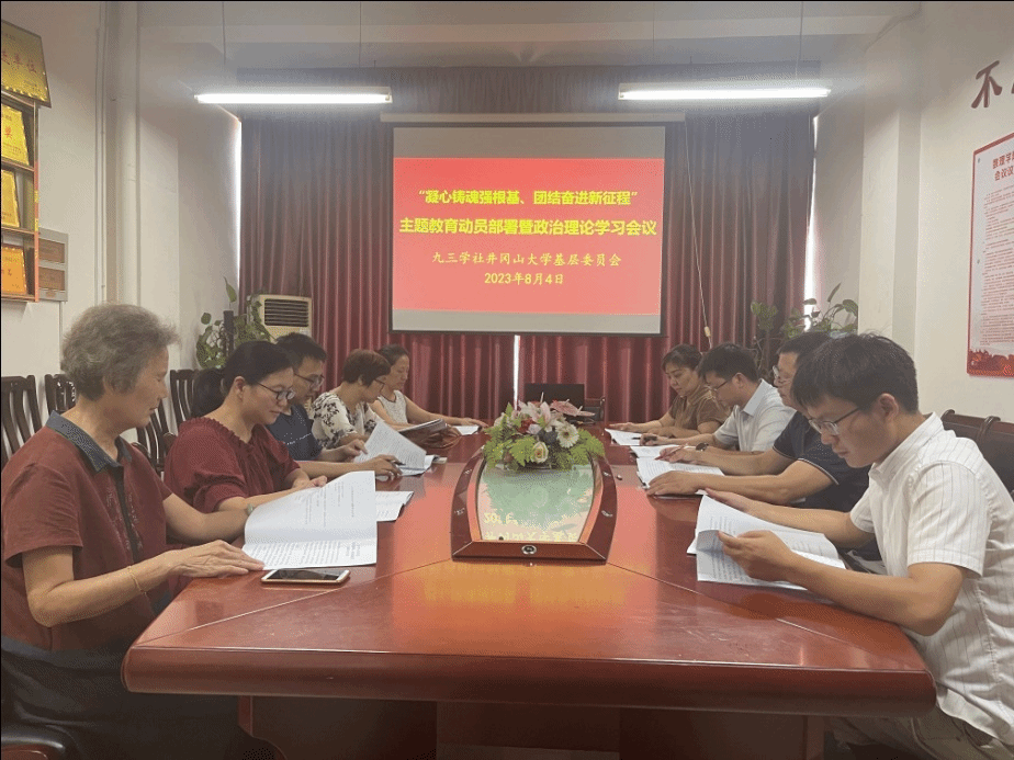 8月4日,九三学社井冈山大学基层委员会召开“凝心铸魂强根基、团结奋进新征程”主题教育动员部署暨政治理论学习会议。九三学社吉安市委会副主委彭聪应邀参会并做专题政治辅导。