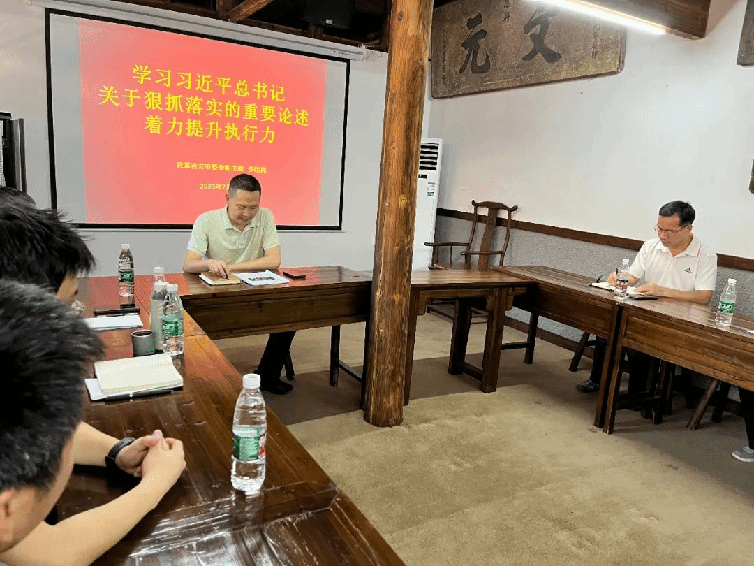 7月11日下午,民革井大总支、青原总支在青原山阳明书院联合开展了“民革中山同心读书会”暨“凝心铸魂强根基、团结奋进新征程”主题教育活动。民革吉安市委会主委、市社联主席周忠平,副主委刘媚琪、李皖民,民革市委委员及民革井大总支、青原总支党员等20余人参加活动。