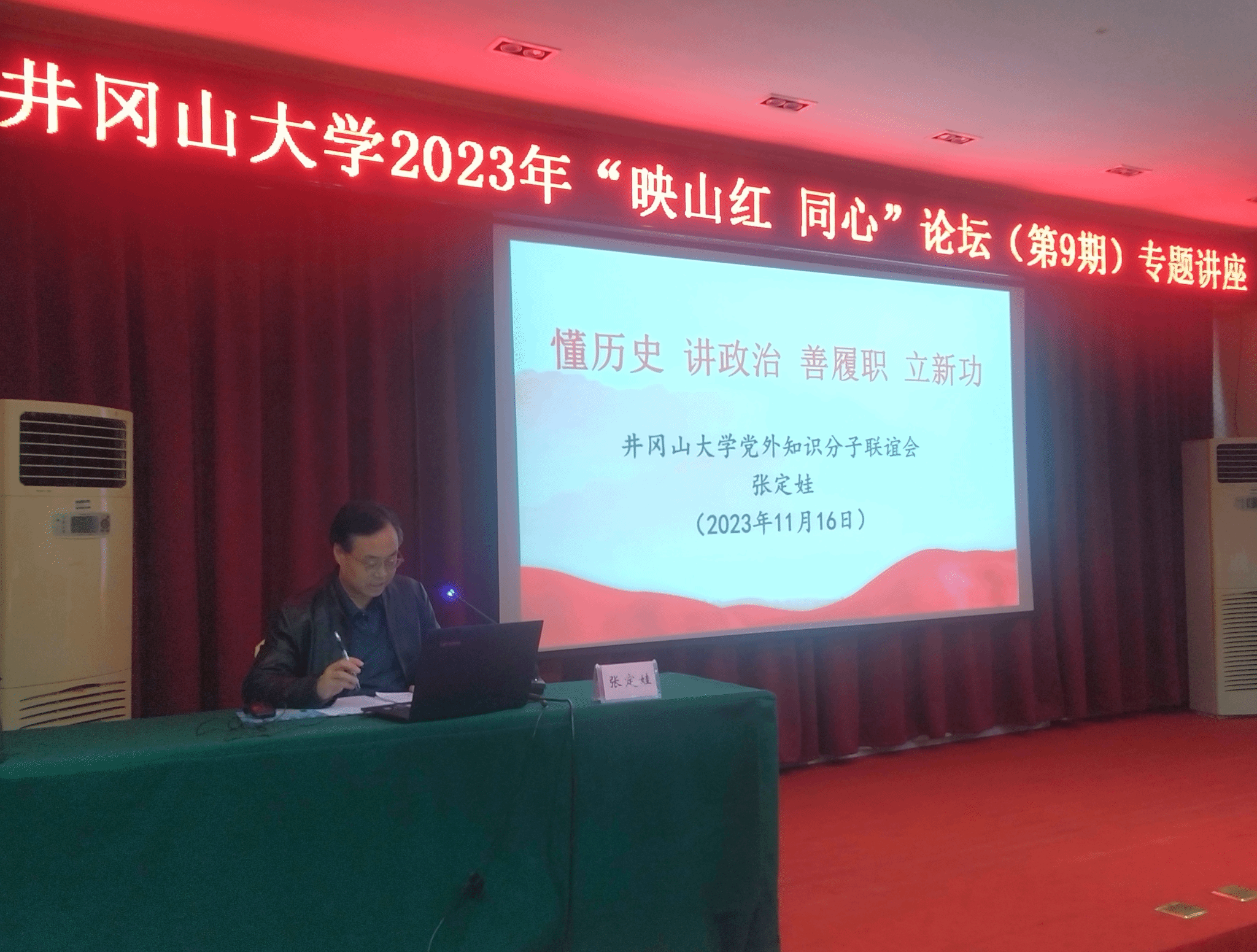 为深入学习贯彻习近平总书记考察江西重要讲话精神和习近平主持中央政治局第九次集体学习重要讲话精神,引领广大党外人士团结协作、干事创业,11月16日,学校举办“映山红·同心论坛”(第九期)专题讲座。讲座由党委统战部副部长李淑冰主持,学校各基层党委统战委员、各民主党派和统战团体负责人以及党外人士教师代表50余人聆听了讲座。