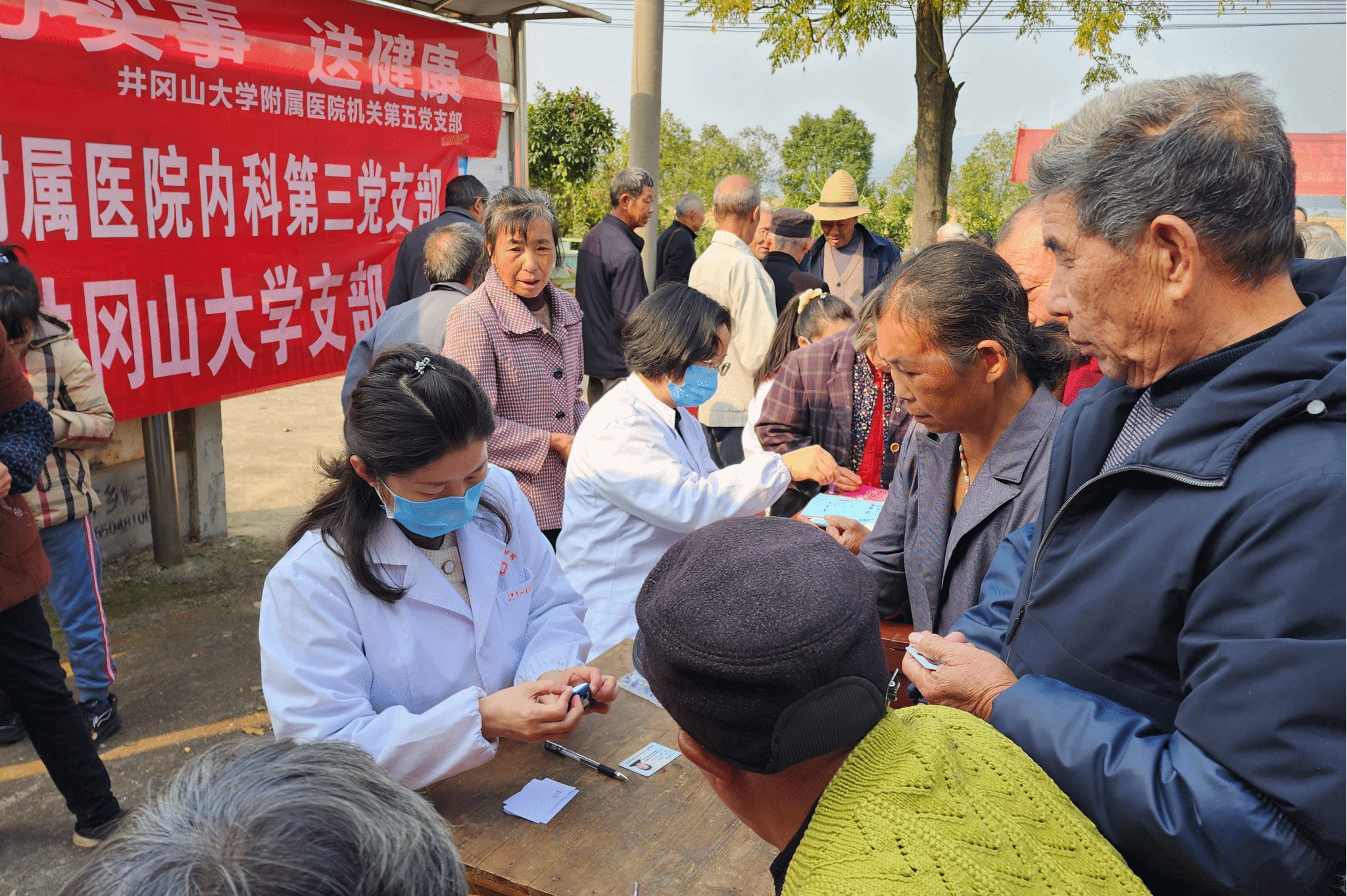 走基层,办实事,送健康。11月26日,民建井冈山大学支部联合中共井冈山大学附属医院机关第五党支部、医技第六党支部、内科第三党支部到吉水县醪桥镇槎滩村开展专家义诊、政策宣传等活动。
