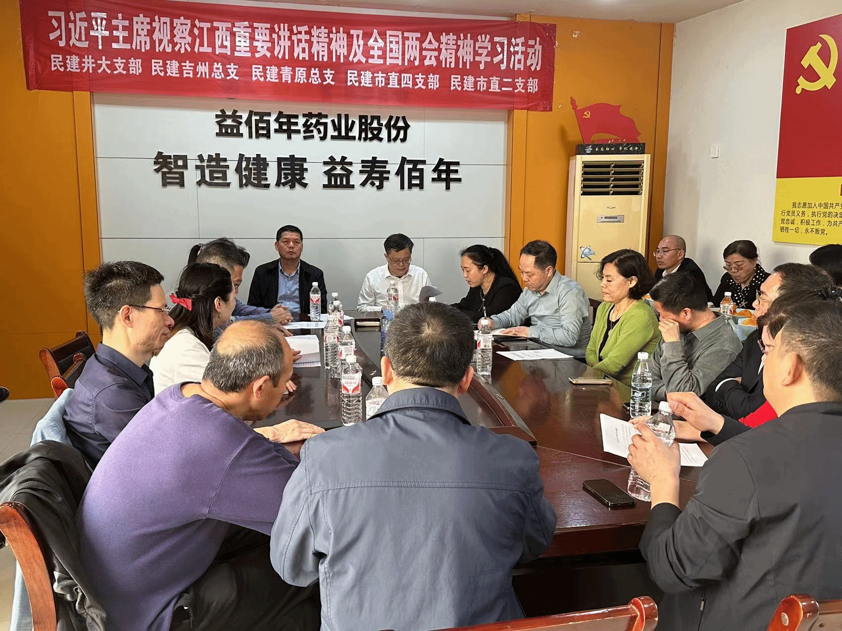 春和景明学两会,同心聚力启新程。 2024年3月24 日,民建井大支部联合吉州总支、青原总支、市直二支部、市直四支部开展学习贯彻全国两会精神等学习活动。吉安市政协副主席、民建市委会主委彭仁才,校党委常委、统战部部长刘梁军,民建市委会专职副主委施向宏以及20余位民建会员参加座谈会。会议由民建井大支部副主委张旭华主持。