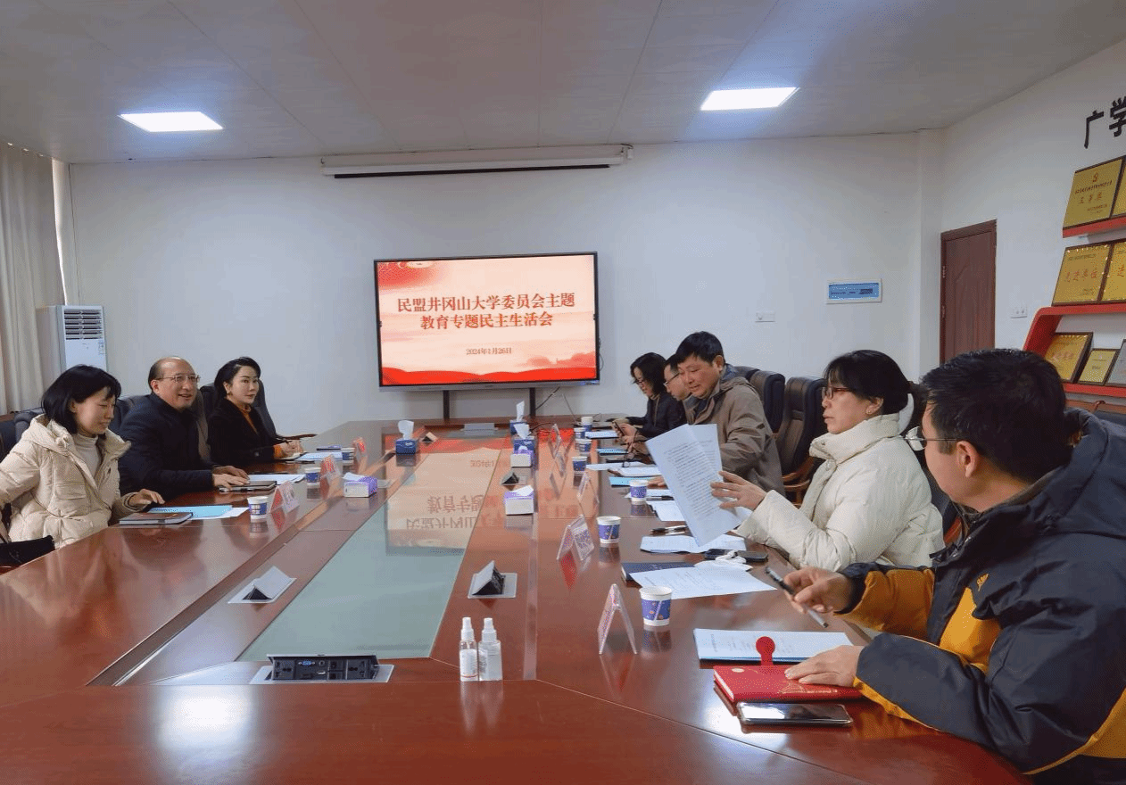 1月26日下午,2023年度民盟井冈山大学委员会“凝心铸魂强根基、团结奋进新征程”主题教育专题民主生活会在井冈山大学召开。吉安市人大常委会副主任、民盟市委会主委梁德华,井冈山大学党委统战部副部长李淑冰,民盟市委会办公室主任郭玉婷到会指导。民盟市委会内部监督委员会主任、民盟井冈山大学委员会主委张晓春主持会议,民盟井冈山大学委员会副主委郭一民、万慧军、闫小红参加会议。