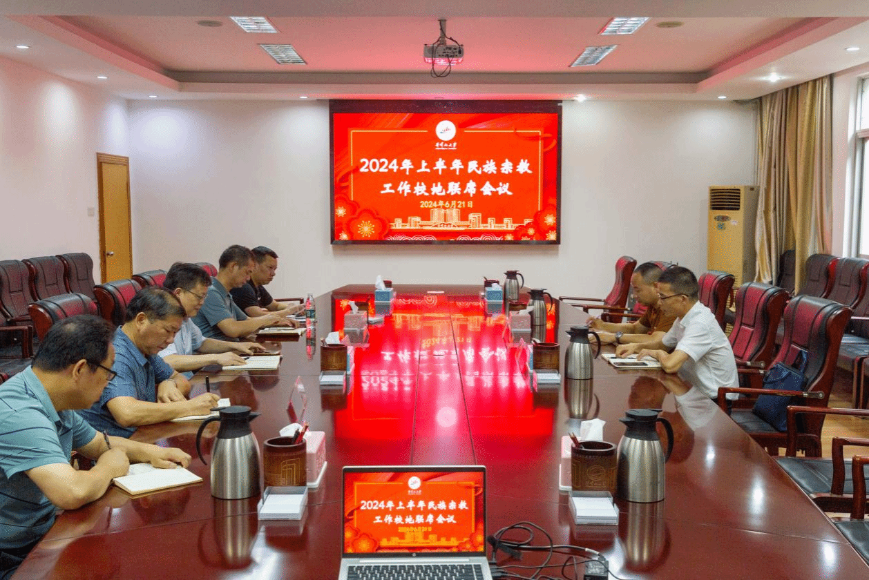 6月21日,学校召开了2024年民族宗教工作校地联席会议。会议由校党委常委、统战部部长刘梁军主持,属地民宗、公安等部门负责人,学校相关责任部门负责人参加了会议。