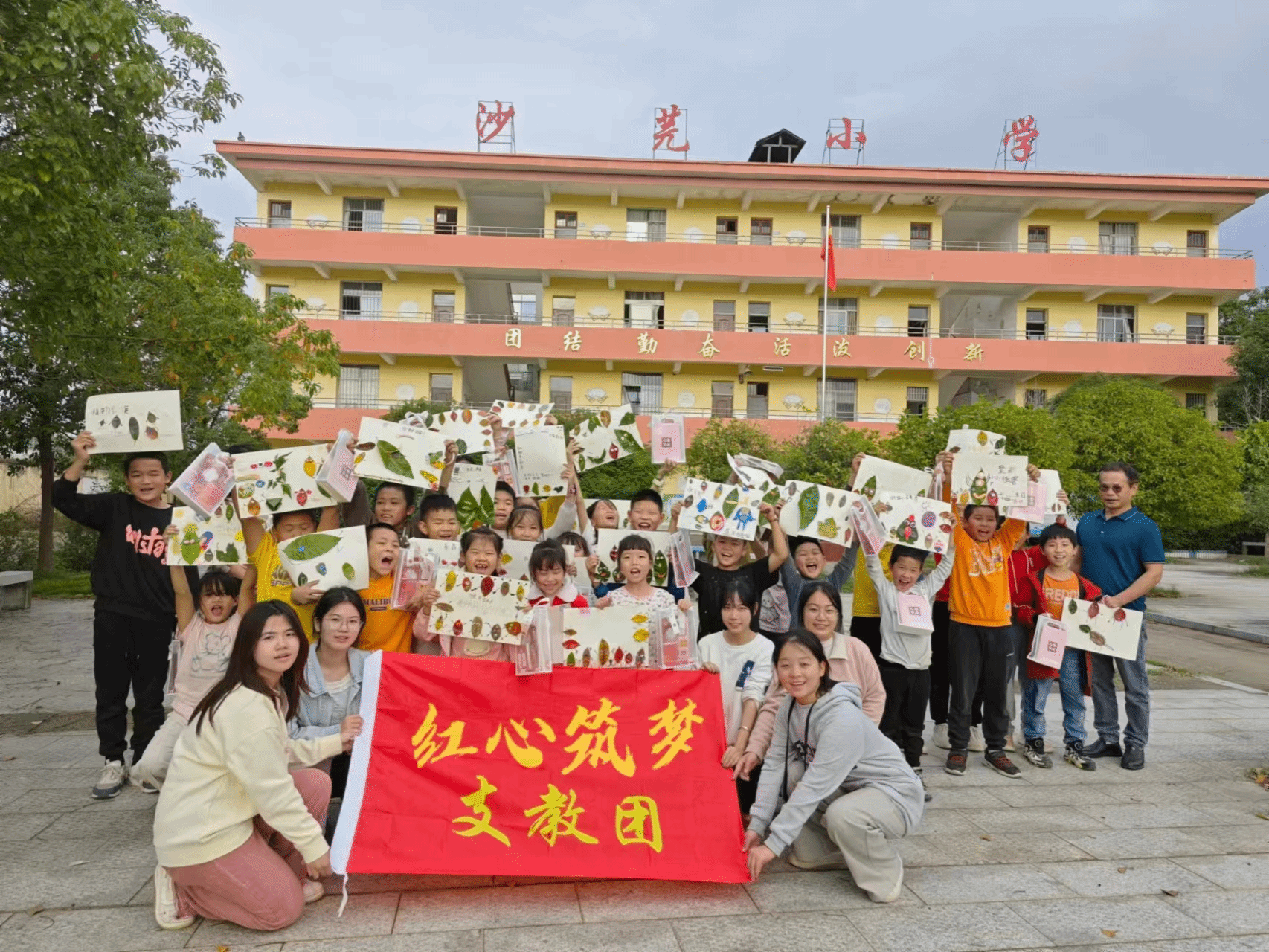 为推动我市城乡义务教育均衡发展,助力乡村小学生美育教育,10月31日下午,民盟井冈山大学委员会携手井冈山大学红心筑梦支教团在青原区沙芫小学开展了“农村教育烛光行动”系列之“一叶知秋——树叶小怪兽”送教下乡活动。活动旨在通过创意美术形式,丰富乡村小学生的课余生活,激发其创新思维和艺术潜能。民盟井冈山大学委员会委员占丽娟老师主持活动,民盟吉安市青委会副主任谢良贞、委员刘灵慧,沙芫小学校长欧阳席萍参加了活动。