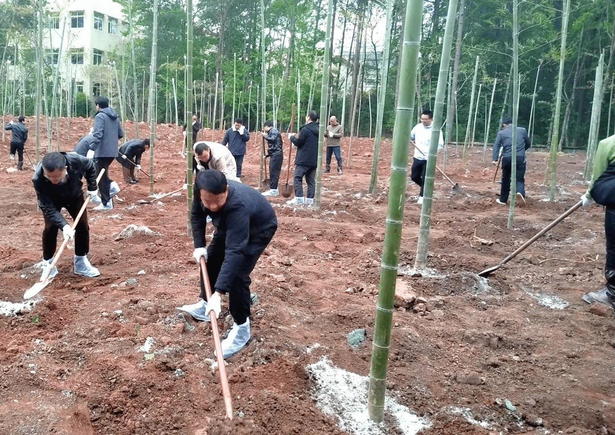 在专业人员的指导下,大家分工协作,有的挥锹铲土,有的扶竹栽种,有的提水浇灌,每一个环节都认真细致。众人齐心协力,配合默契,现场处处洋溢着团结协作的氛围。此次活动共种下翠竹百余株,为校园增添了一片生机勃勃的“翠竹园”。